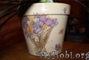 Желающим сделать новый рисунок на декоративной тарелке, цветочном горшке или фаянсовом чайнике для заваривания, интересно узнать, что это за техника декупаж, и какова последовательность ее выполнения. Декоративные украшающие элементы для керамических изделий можно вырезать из любых печатных изданий, оберточной бумаги и обоев, а также из принтерных распечаток, этикеток и салфеток. Желательно подготовить картинки из тонких видов бумаги, акриловую краску для грунта и подкраски недостающих элементов, маленькие ножницы, спирт и клей. После обезжиривания поверхности, на ней разглаживают вырезанный фрагмент рисунка, который после высыхания надо покрыть требуемым количеством слоев лака.