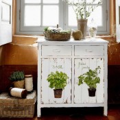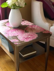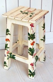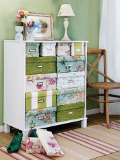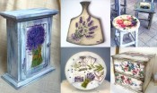 Старинный комод, поверхность которого обветшала, можно превратить в антикварный шедевр, расписанный художником, если научиться делать декупаж и украсить его фасад, поверхность и боковины узорами. Для этого понадобятся яркие салфетки с растительными принтами, которые надо аккуратно вырезать, а затем наклеить на зашлифованную и грунтованную деревянную поверхность раритетной мебели.