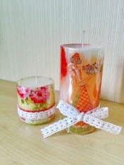 Кроме твердых поверхностей, техника декупажа из салфеток применяется для работы с кожей, различными тканями и искусственными покрытиями, свечами из стеарина и воска. С помощью такого декоративного приема можно украсить обувь, аксессуары, мебель и различные предметы окружающей среды.