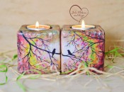 Простые изделия из стекла могут превратиться в необыкновенные произведения искусства, если приложить к ним пошаговый декупаж для начинающих. В доме всегда можно найти обычную стеклянную вазу и нанести на нее рисунок изнутри. Стекло необходимо обезжирить и подобрать нужный узор, вырезанный из салфетки. Приложив рисунок к файлу, лицевой стороной вниз, надо смазать его клеем ПВА с водой 1:1. Затем фрагмент следует приложить к внутренней стороне сосуда и осторожно удалить файл. После высыхания бумаги, поверхность защищается с помощью лака, а участки вокруг рисунка можно дополнить эмалевыми или акриловыми красками.