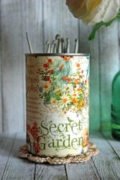Если в доме хранится старинная жестяная коробка интересной формы, то используя технику декупажа для начинающих, можно придать вещи новое значение. Перенос картинок на металлические поверхности становится увлекательным занятием и помогает украсить многие окружающие предметы, такие как посуда, шкатулки, садовый инвентарь и другие элементы интерьера. Металлические поверхности с пятнами ржавчины необходимо предварительно зачистить и обезжирить спиртом. Затем надо применить грунтовку, которые для нагреваемых поверхностей должны быть термостойкими. Салфетки будут хорошо держаться на уретановом лаке, а для завершающей подкраски используют эмаль по коррозийным поверхностям, с добавлением гуаши.