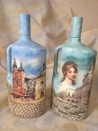 Многие мастера рукоделия, чтобы научиться, как делать декупаж, начинают свои первые опыты с украшения стеклянных поверхностей. В каждом доме имеется множество стеклянных предметов для первых шагов в данном виде рукоделия. Можно использовать банки, стаканы, бутылки, вазы и тарелки. Несмотря на легкость работы по стеклу, она обладает некоторыми особенностями. Качество будущей поделки зависит от подготовки поверхности, которую необходимо обезжирить спиртом или ацетоном, а затем загрунтовать бесцветным акриловым лаком или препаратом для сложных поверхностей. Техника переноса рисунка с бумагой на стекло не отличается от этого процесса на остальных материалах.