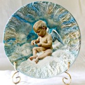 Нанесение декупажных узоров на фарфоровые или керамические тарелки усложняется особенностями их формы. Легче всего сделать декоративный фрагмент на ровной средней части посуды, используя пошаговую инструкцию для работы с керамикой.