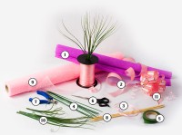 Материалы и инструменты, необходимые для изготовления конфетного букета «Маки»:
