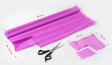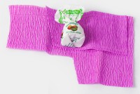Нарезаем гофрированную бумагу небольшими кусками, каждый размером 18х12 см. Укладываем конфету и заворачиваем, как показано на фото.