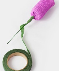 Крепим на проволоку с помощью тейп-ленты и завязываем ленточкой сверху. (Или в обратном порядке - завязываем ленточкой сверху и крепим на проволоку с помощью тейп-ленты.) Конфета не прокалывается!