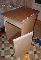 Есть много разных мнений, почему выгодно или не выгодно переделывать старую мебель, а для меня это не просто выгодно, но и доставляет огромное удовольствие сам процесс, который иначе как творческим и не назовешь. После удачных экспериментов с мелкой мебелью (стульями и креслами), захотелось попробовать свои силы в чем-то побольше. И во время поиска обьекта переделки, пред мои очи попала кухня. А так как, в связи с вынужненным отпуском, появилось побольше свободного времени, я решила не затягивать с раздумиями и сразу взялась за дело.