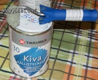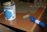Итак для начала определилась с цветом в который буду красить - это светло-зеленый, для фасадов, и на тон темнее для остальной части шкафчиков. Красила, как обычно, матовым лаком Tikkurila Kiva и прикупила маленькие валики для покраски.