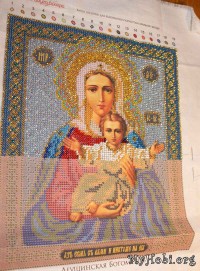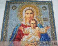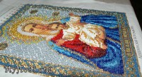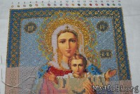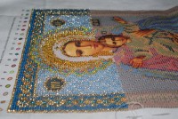 Еще небольшое пополнение бисеринок. При оформлении предыдущих икон сделала вывод - что бисер с края иконы и возле лика лучше прошивать по два раза - тогда бусинки не шатаються и более плотно прилегают друг к другу. В этой иконе так и шью - получается хорошо.
