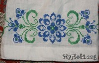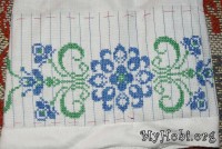 Центральный мотив голубыми вышит перехожу к зеленым