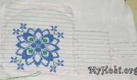 Вобщем несмотря на все приключения процесс вышивки продолжается. Немного неудобно было шить боковые кусочки так как сложновато было состыковать два кусочка канвы. Но в итоге у меня уже готова полностью вышивка возле горловины