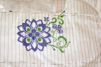 Так что теперь принимаюсь за рукава. Сначала нашила канву и уже немного крестиков сделала