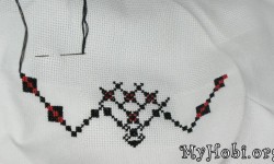 Снова у меня незапланированная вышивка - сорочка в подарок маме. Использую готовую сшитую сорочку от Чаривной мыти. Схему придумывала-дорисовывала сама, используются цвета черный, вишневый, так как дарится она будет в паре с папиной (еще не вышитой) сорочкой, то и узор придумывался так, чтоб элементы в двух вышиванках были одинаковые.