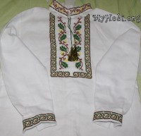 Пока шел вышивальный процесс придумались еще две идеи для новых сорочек, так что скоро будет еще. Ну а пока об этой - размер вышиванки 128, заготовка была куплена во Львове, сорочка была полностью сшита, кроме рукавов и воротника (можно было регулировать их размер). Использовала нитки белка и ариадна, на сорочку пошло 1,5 мотка зеленых и коричневых, и 0,5 мотка желтых. Схема найдена в интернете, перенабрана и изменена немного. Кому интересно что означает все вышитое читаем тут. Ткань равномерка, шилось легко, на роботу потратила с перерывами 2 месяца.
